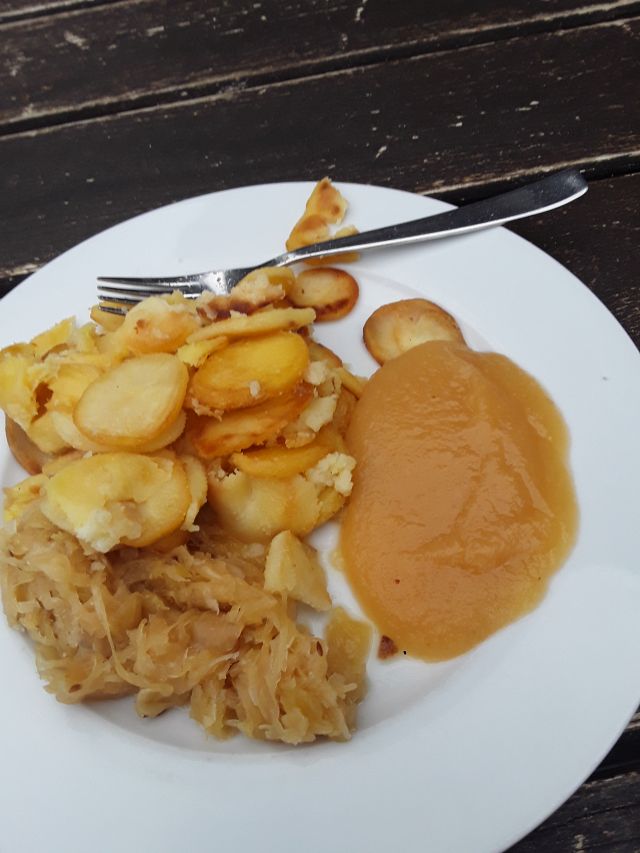 Das Frühstück war noch mit die einfachste Mahlzeit des Tages. Es gab Brötchen, Brot, Marmelade, Müsli, Cornflakes und meistens etwas Gurke, Tomate und Salat. Leider gab es weder Margarine noch vegane Aufstriche (kannten wir durch Aufenthalte in JHBen) und auf dem Salatteller wurde die Streichwurst angerichtet, sodass wir den Salat nicht immer nutzen konnten. So haben wir uns im örtliche Supermarkt Margarine, Aufstriche und Haferdrink gekauft und konnten jeden Morgen ausgiebig frühstücken.