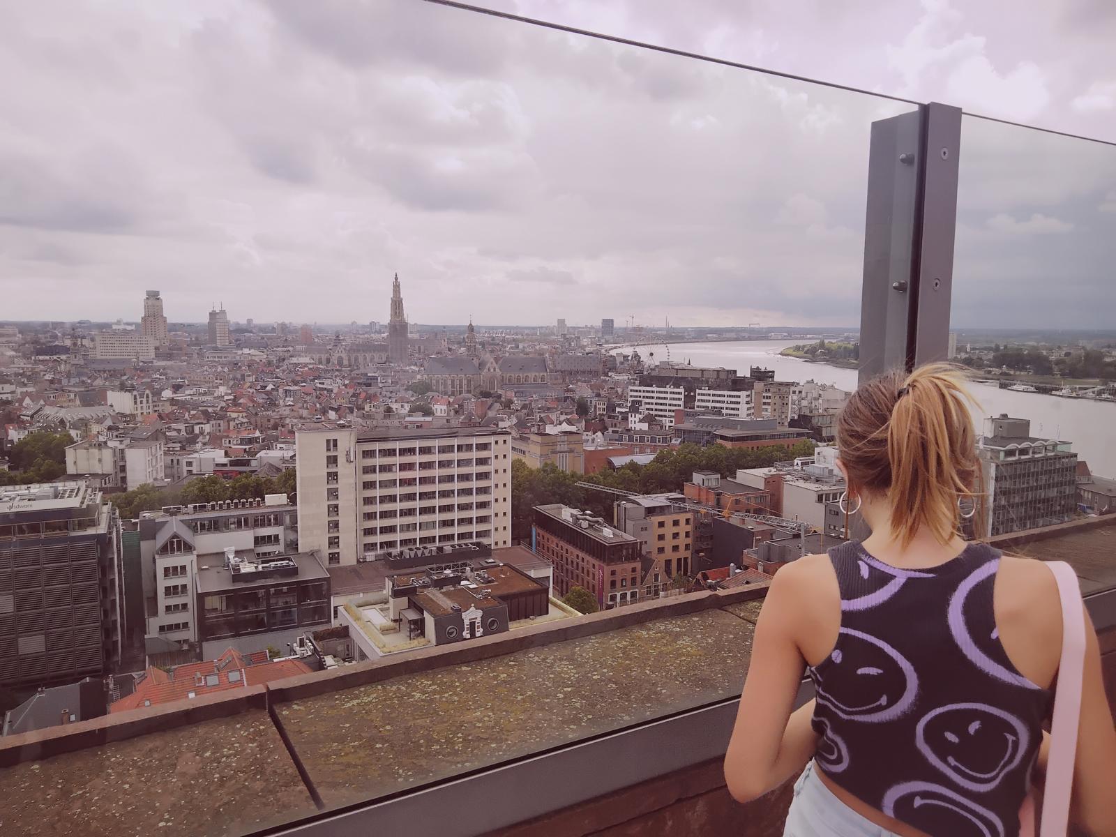 Ausblick auf Antwerpen mit Linnéa im Vordergrund