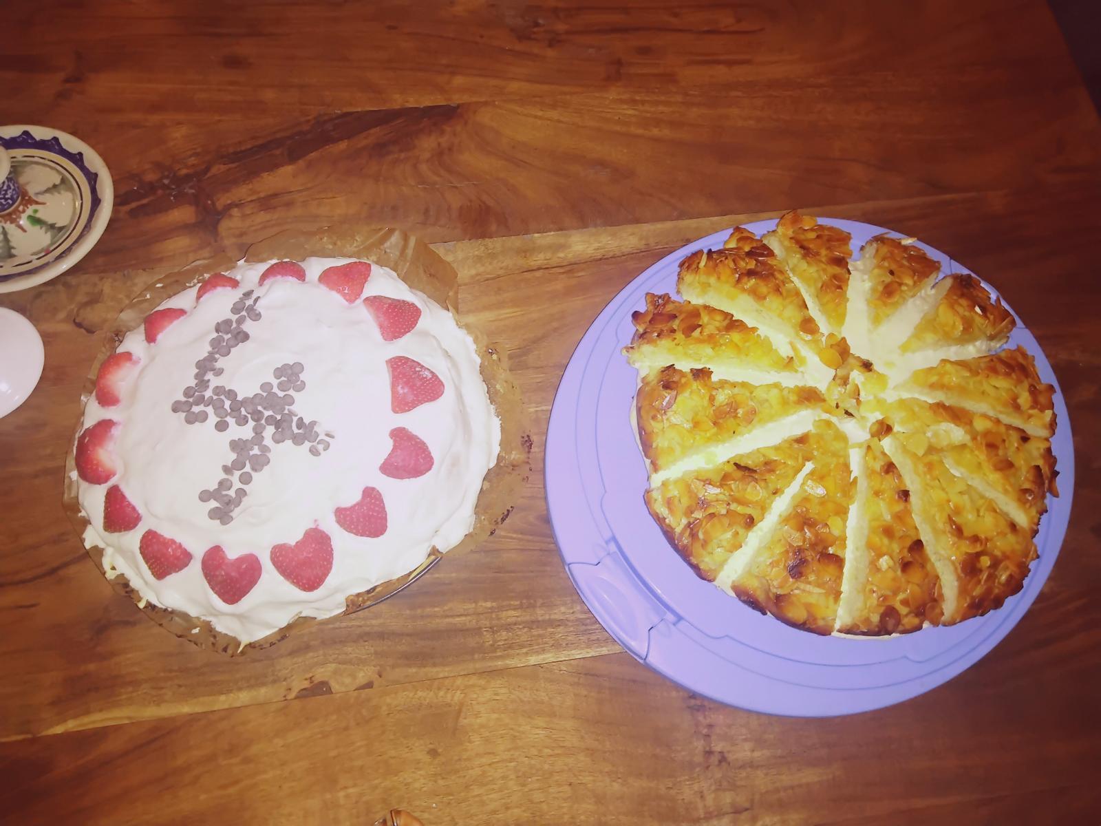 Vegane Erdbeer-Sahne-Torte und veganer Bienenstich